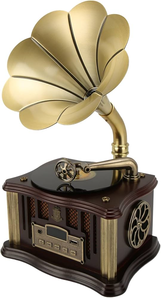 শিল্পসম্মত ডিজাইন: বিশাল ব্রাস-রঙের হর্ন এবং সমৃদ্ধ কাঠের ফিনিশিং, যা এক ঝলকে আপনাকে পুরনো দিনের সঙ্গীতযন্ত্রের কথা মনে করিয়ে দেবে।
