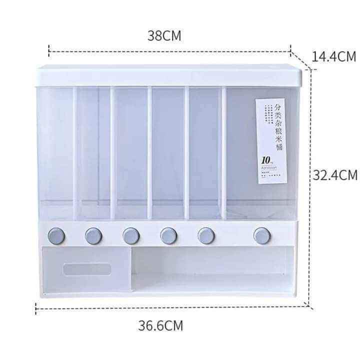 Dry Food Dispenser 6-Grid Grain Rice Bucket Cereal Dispensers Food Storage Box Container Kitchen Storage Tank